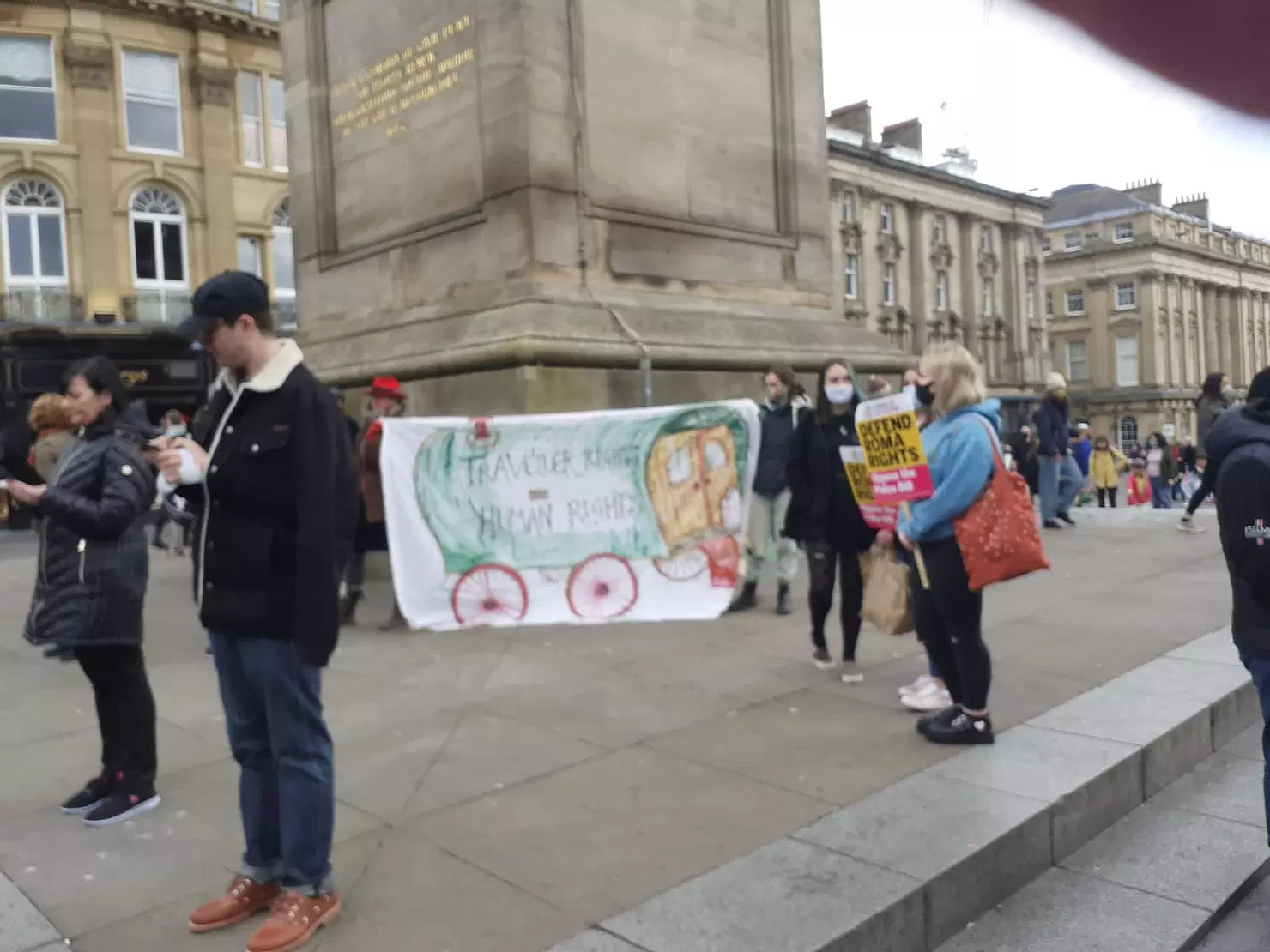 Above and below are more pictures from Newcastle, great to see a banner in solidarity with the travelling/Roma community.