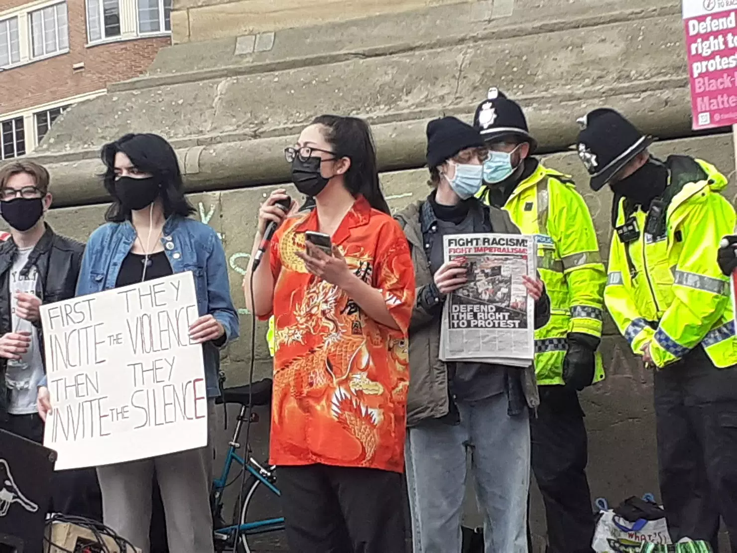 Simon Hannah “Latin American group speaking in Brixton for the local kill the bill rally”