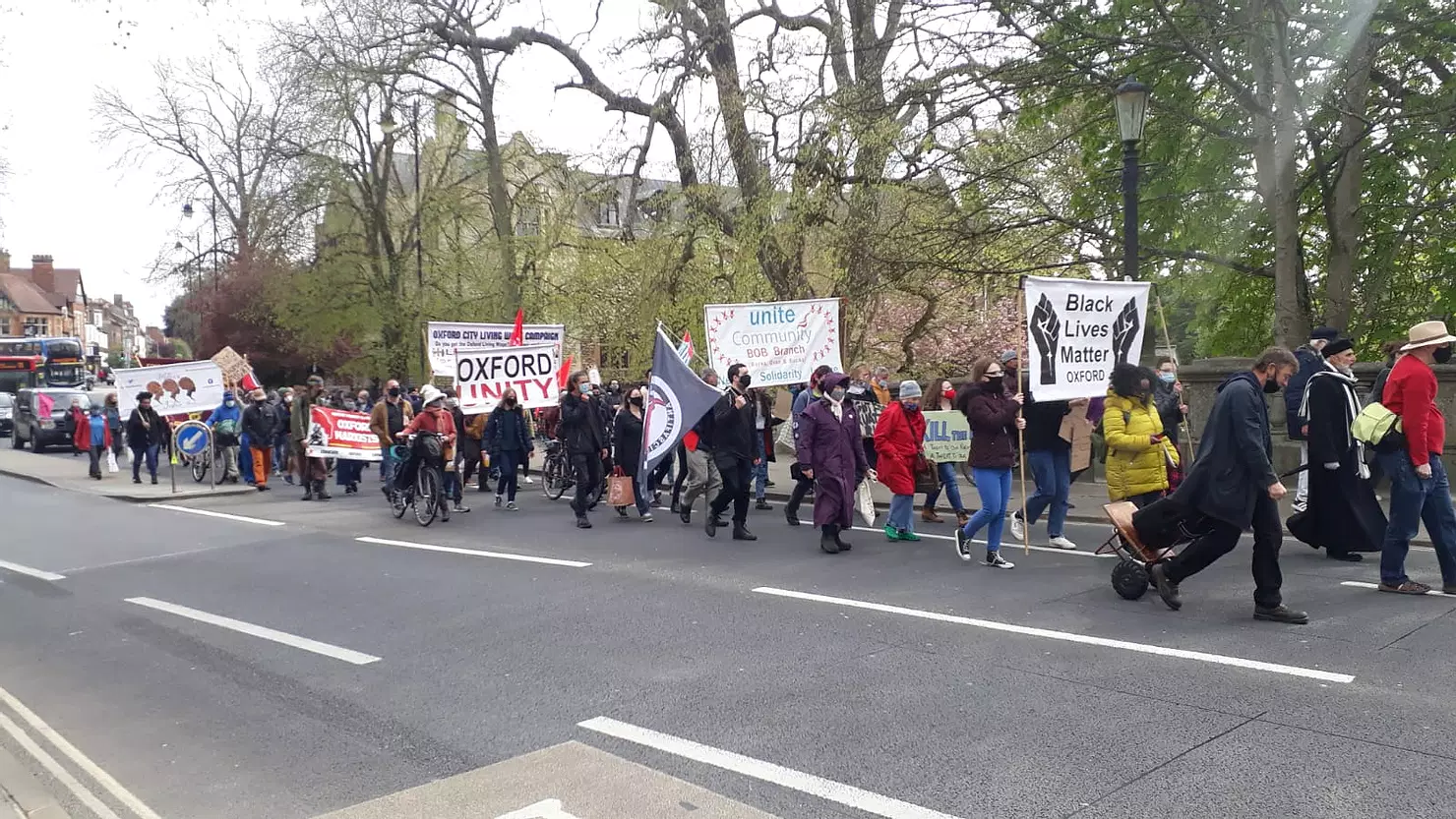 Jude Roberts in Oxford “Probably 150 people with lots of local interest. A seriously broad range of groups represented. The sense of solidarity is powerful. Protesters began by taking the knee for 8 minutes and 46 seconds, before marching into the town centre chanting and singing and demanding that the PCSC Bill be killed. We are most definitely noisy and annoying!