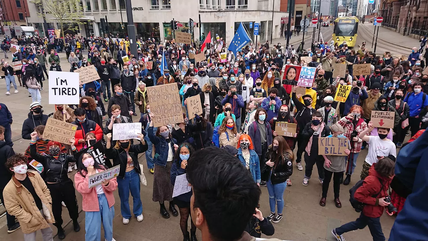 Ian Parker “About 300 protestors at the main Manchester #KilltheBill protest and about 50 at the smaller SWP protest”.
