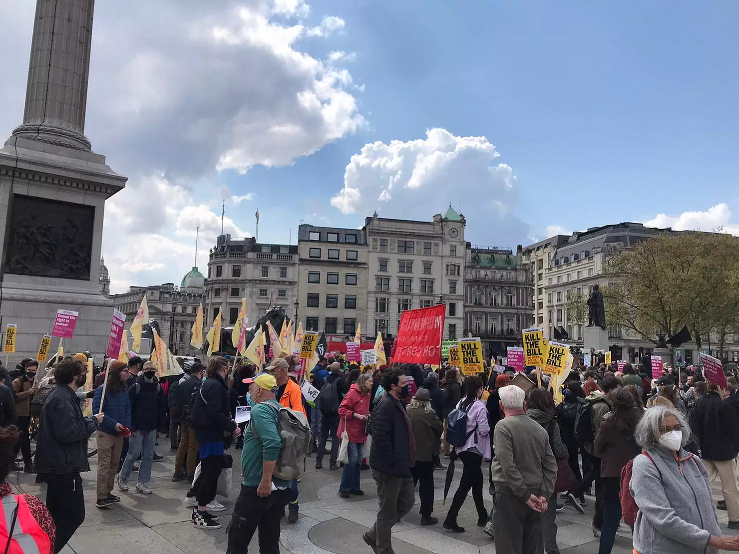 Neil Faulkner ” I’m in Central London where the Kill the Bill demo is assembling in Trafalgar Square. Awaiting the arrival of feeder marches from Inner London”